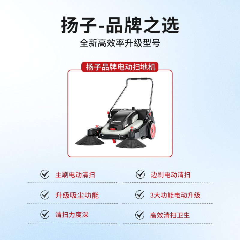 揚子YZ-S2pro手推式電動掃地機全新升級電力驅(qū)動清潔效率每小時可達5250平方米,工廠、車間、物業(yè)等道路清潔一推即凈。