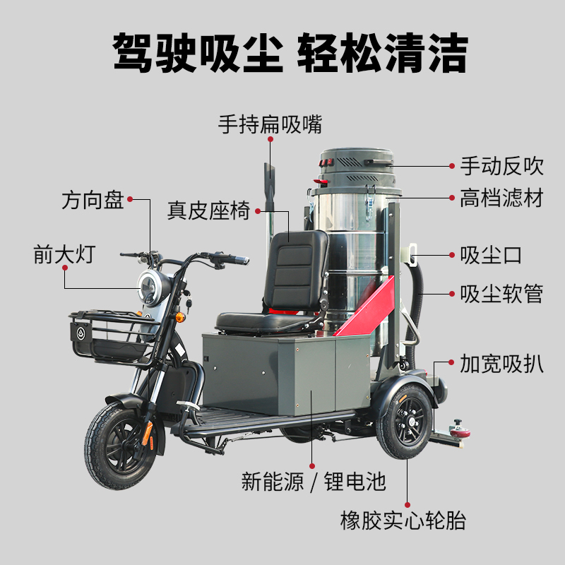 揚(yáng)子YZ-ZL100F駕駛式吸塵車,雙桶電動(dòng)吸塵靈活方便,2200W大功率輕松吸納灰塵、鐵屑、砂石、碎渣紙屑等垃圾